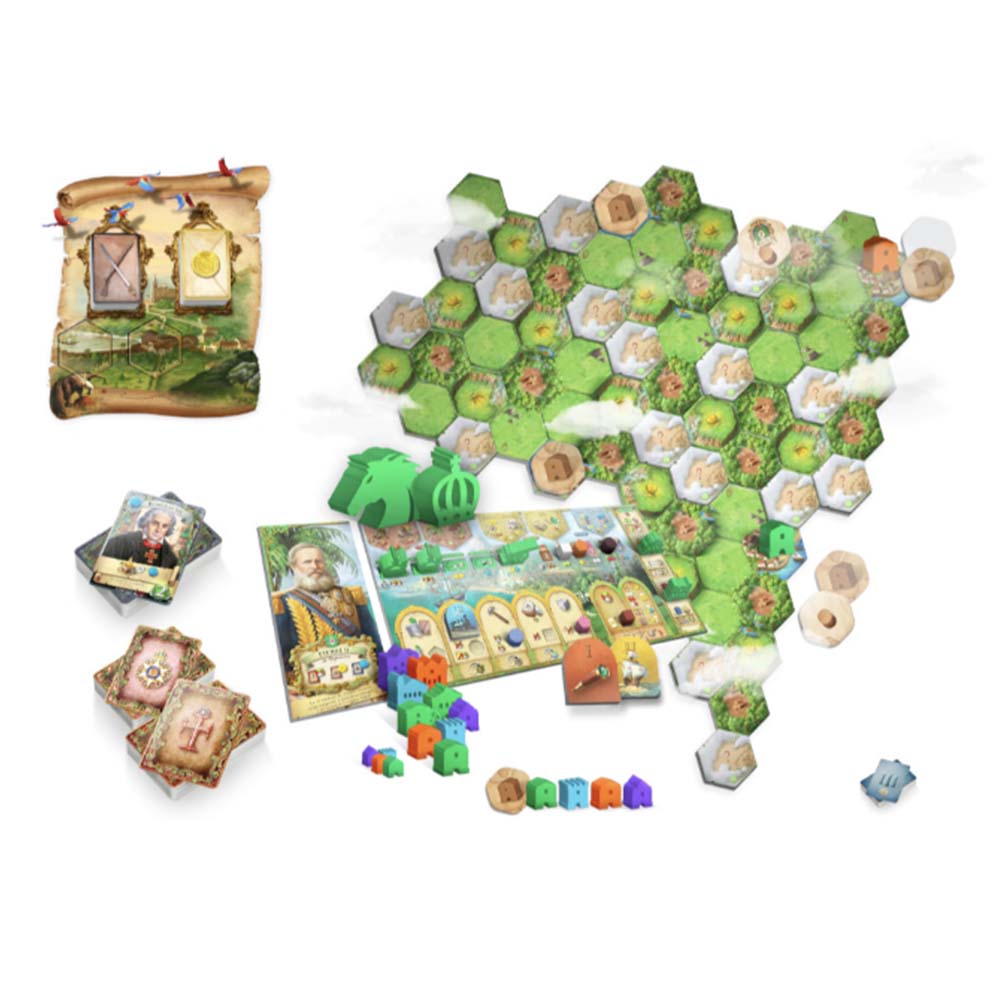 Take on the role of one of the great monarchs of the past, and show your valor! You will arrive in a vast and rich territory, but the road to prosperity is filled with challenges. In Brazil: Imperial, you need to construct buildings, manage resources, explore the land, create trade, acquire the support of the greatest personalities of the country, and recruit a powerful army to protect your interests against the rival states. If you make the right choices, you can complete missions to progress to a more advanced era, receiving new and interesting options for development and victory points. In the end, the best monarch receives the title of Brazilian Emperor and constructs a new era of prosperity, freedom and peace! In more detail, while playing on a modular map board that recreates real regions, you use a combination of worker placement, area majority, and individual powers to construct an empire in Brazil between the 16th and 19th centuries. You start by choosing one of the available monarchs and its personal game board and components; some monarchs are strong in combat, while others prioritize science or exploration. You receive tasks that advance your progress when you complete them, giving you access to more power constructions as you move into the second and third eras of the game.
